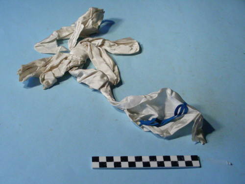 di colore bianco, a sei lembi trattenuti da un passante che reca cucito un anello per il fissaggio. Ad un lembo è fissato un nodo savoia di colore azzurro.