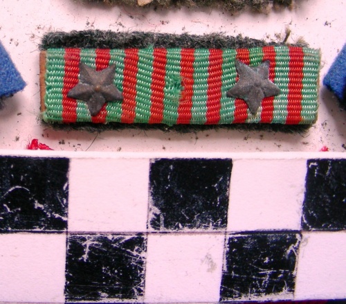 Di seta con 19 righe verticali, alternate, 10 di colore verde e 9 di colore rosso. Sul nastrino applicate due stellette a cinque punte brunite, una per ogni anno di servizio.