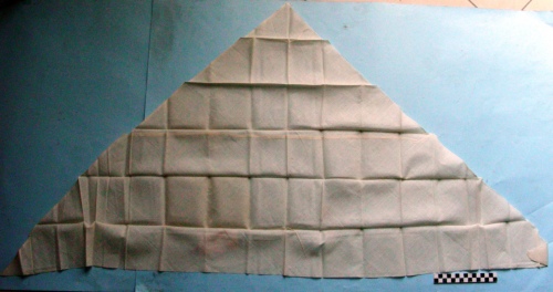 Triangolo idroscele di tela ripiegato per essere riposto nella sua busta contenitore.