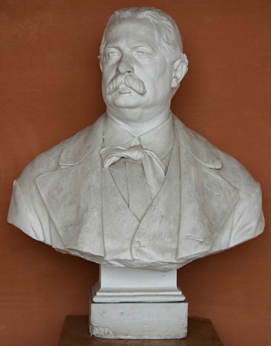 - NOTIZIE STORICO CRITICHE Luigi Camerini (1819-1885), rimasto orfano in giovane età, fu allevato dallo zio Silvestro, alla morte del quale (1866) ne ereditò le sostanze e i beni di Piazzola. A lui si devono molti dei lavori di restauro e di abbellimento che risollevarono le sorti della villa in abbandono. Fu sua la fortunata idea di commissionare a Giovanni Duprè il monumento allo zio Silvestro collocato all'interno del mausoleo antistante l'ingresso della villa di Piazzola sul Brenta (P. Camerini 1929, p. 430). Sempre a lui si deve, con tutta probabilità, la commissione a Luigi Ceccon del bassorilievo, raffigurante un episodio della vita del Duca Silvestro, inserito all'interno del monumento, previo parere favorevole di Duprè. Il busto in oggetto fu eseguito nel 1866, anno di morte del Duca e conseguente assunzione dell'eredità famigliare da parte del nipote. Ceccon, nel ritrarre l'erede Camerini, ne evidenzia l'espressione ferma e intensa dello sguardo, che in ossequio alla più consolidata delle iconografie, "guarda lontano". In villa si conserva un altro busto consimile realizzato nello stesso torno di tempo.