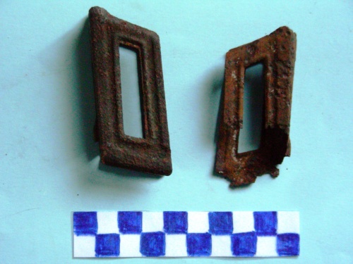 Lastrina romboidale di lamiera sagomata con due aperture sulle facce laterali ed una aperta per l'inserimento delle cartucce.