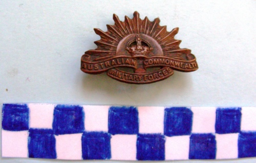 - ISCRIZIONI sul cartiglio - AUSTRALIAN COMMONWEALTH MILITARY FORCES - lettere capitali - in rilievo - inglese