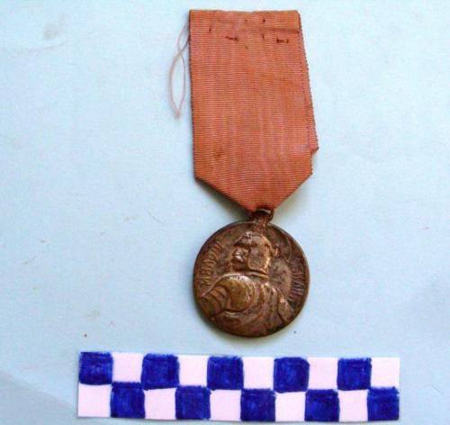 Disco argentato, sul dritto, in rilievo, il profilo di Milosh Obilich con corazza ed elmo sormontato da drago, iscrizione lungo la corona. Sul verso croce patente con sovrastanti due spade incrociate e corona d'alloro con iscrizione all'interno. Nastro di colore ocra.