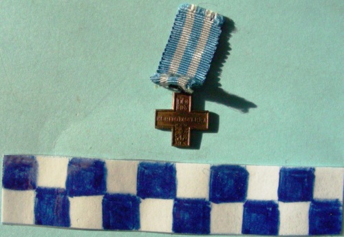 Distintivo mignon. Decorazione costituita da una croce greca riportante una iscrizione, al diritto, sulle due braccia orizzontali, Sulle braccia verticali si trova, in alto il monogramma della Repubblica Italiana. In basso si trova invece un gladio romano invaso di foglie d'alloro. Sul verso, in centro, una stella a cinque punte raggiante sulle braccia della croce. Il nastro è azzurro con due strisce bianche centrali separate.