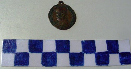 Di forma circolare. Sul recto, busto accollato di tre quarti a sinistra di Garibaldi con fez. Iscrizione lungo la corona. Sul verso, iscrizioni lungo la corona ed entro tra rami di quercia.