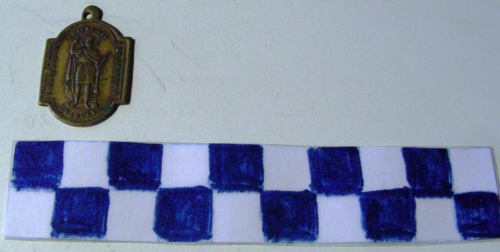 Di forma rettangolare con i lati superiore ed inferiore arrotondati. Sul recto, al centro, in rilievo la figura in piedi a sinistra di un santo nimbato nell'atto di alzare una croce con la destra. Iscrizione lungo i lati. Sul verso, al centro, in rilievo, entro ovale perlinato il monogramma J H S sormontato da croce. Iscrizione lungo i lati.