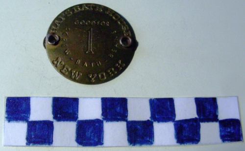 - ISCRIZIONI sul recto, lungo la corona - HAP'S BATH HOUSE NEW YORK - caratteri alfanumerici - a incisione - inglese