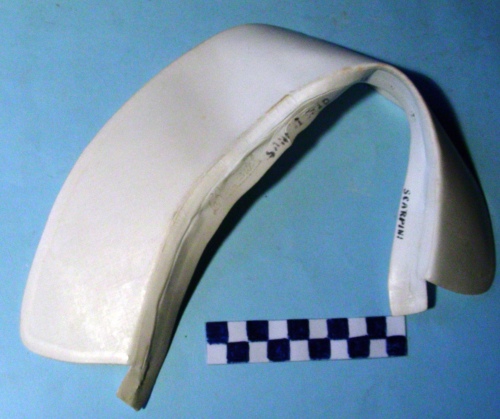 Di colore bianco, con punte arrotondate e due asole di chiusura.