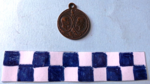 Di forma circolare. Sul recto entro ovali sormontati da acquila abbassata busti accollati di Napoleone III a destra e di Vittorio Emanuele II a sinistra.Nella parte sottostante leone reggente stemma Savoia su bandiere decussate. Iscrizioni lungo gli ovali. Sul verso, al centro, iscrizione circondata da rami d'alloro e di quercia legati da nastro. Ulteriore iscrizione lungo la corona.