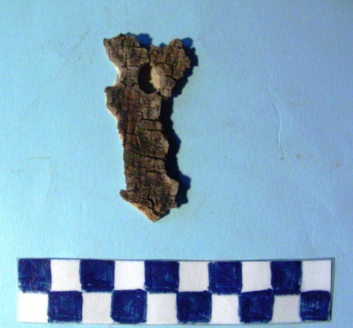 Pezzo di corteccia con foro presumibilmente di proiettile.