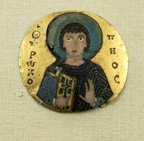 - ISCRIZIONI ai lati - O A ΠPΩKOΠHOC - maiuscoli - a smalto - greco
