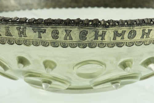 - ISCRIZIONI lungo la fascia dell'orlo - AΓIE ΠANTEΛEHMON BOHΘEI TΩ CΩ ΔOYΛΩ ZAXAPIA APXIEΠICKOΠΩ TΩ IBHPI AMHN - maiuscoli - a incisione - greco