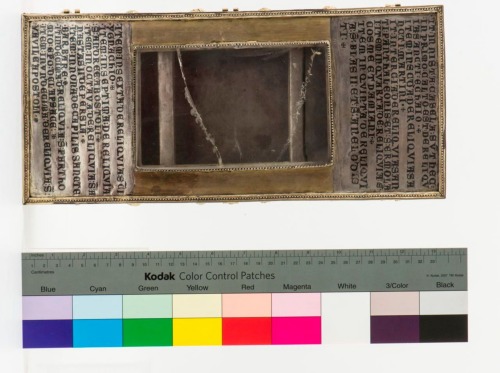- ISCRIZIONI sul coperchio - IT: INNISTA CASELLA SUNT HAEC IN PRIMO CALTO DE RELIQUIA SANCTI ECHAIO ITEM IN SCDA DE RELIQUIA SANCTI MARTINI IN TERCIA DE RELIQUIA SANCTI PANTHALEONIS ET S ERMOLAI 4. COSME ET DAMIANI 5. BLASII ET ANELODISTI 6. S.YGNACHIO 7. ANDREE APOSTOLI 8. ANASTASII DE PERSIA 9. DE CAPILIS SANCTE BARBARE 10. S PARTHOMIO EO DE LAPSACE 11. S VAVILE APOSTOLI - capitali - a niellatura - latino