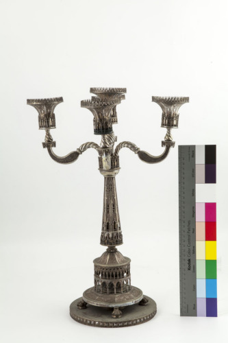 - NOTIZIE STORICO CRITICHE Fa parte di un gruppo di quattro candelabri, donati al Tesoro di San Marco dal nobile vicentino Ottavio Angaran nel 1848, in riparazione delle perdite subite in epoca napoleonica. In origine, considerando l'assenza di motivi religiosi, era probabilmente d'uso profano
