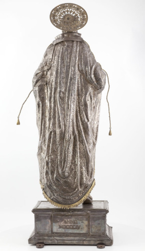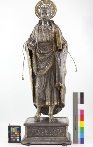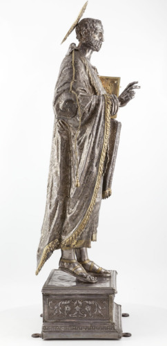 - NOTIZIE STORICO CRITICHE La documentazione assegna l'opera all'orafo Francesco Francesconi, ma poichè le lettere dei punzoni non corrispondono all'iniziale del nome, forse si riferiscono ad un parente o ad un maestro operante nella sua bottega. La statua doveva sostituirne una analoga, realizzata nel Cinquecento, che andò fusa in Zecca alla caduta della Repubblica di Venezia nel 1797