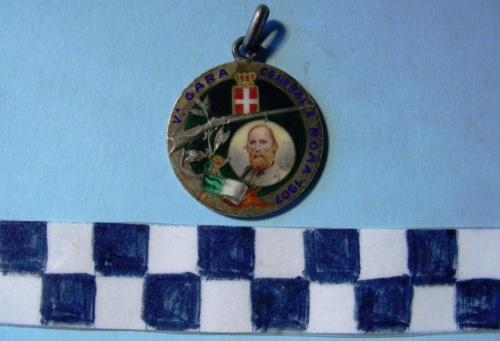 - ISCRIZIONI sul recto lungo la corona - Vª GARA GENERALE ROMA 1907 - caratteri alfanumerici - a smalto -