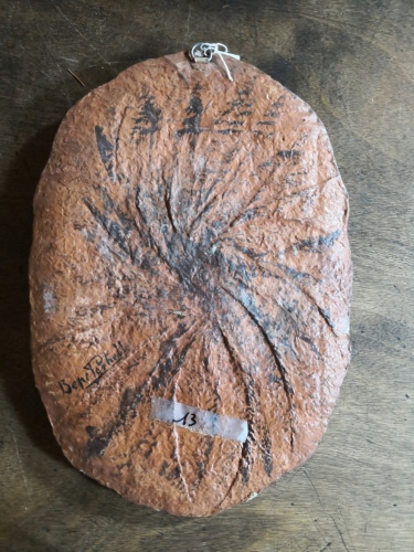 cartone coperto su un lato di cartapesta modellata, dipinta e verniciata