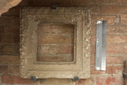 - NOTIZIE STORICO CRITICHE La spiegazione del Callegari (1930) per il manufatto, ritenuto un "contorno di finestrino quadrato in stile neobizantino" attribuito al sec. X, è smentita dalla presenza, all'interno della cornice, di tre fori praticati per inserirvi il battente di un'anta.