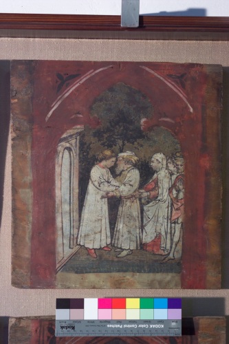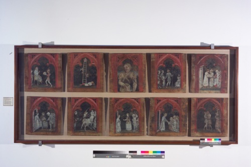 - NOTIZIE STORICO CRITICHE Le tavolette appartenevano forse ad una decorazione di soffitto (per una possibile provenienza da un palazzo della famiglia Meli cfr. Nepi Sciré) ben più complessa. La critica ha infatti rilevato stringenti collegamenti tra questo ciclo ed altre analoghe opere conservate all'Albertini di Vienna (cfr. Ragghianti) al Museo di Trento e al Museo di Cremona (cfr. Rasmo). A partire da Longhi il ciclo è attribuito dalla critica, pur con diverse puntualizzazioni circa la completa autografia e la datazione, a Bonifacio Bembo (per una disamina delle diverse posizioni critiche cfr. Nepi Sciré, con bibliografia precedente).