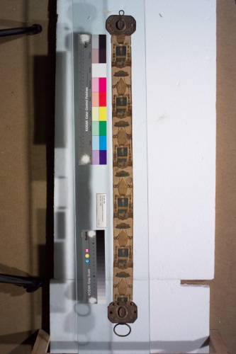 - NOTIZIE STORICO CRITICHE la tipologia tessile di fondo in armatura cannetillé è tipicamente settecentesca; gli ottoni terminali sono lavorati a sbalzo e raffigurano amorini tra ornamentazioni neoclassiche.