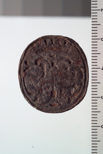 sigillo in bronzo con leone marciano e impugnatura con stemma trocato semipartito; nella parte superiore un'aquila sotto tre stelle.