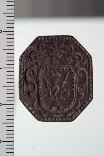 sigillo ottagonale con cerniera: stemma coronato con leone rampante e coronato che regge una spada poggiante su piedistallo a tre monti.
