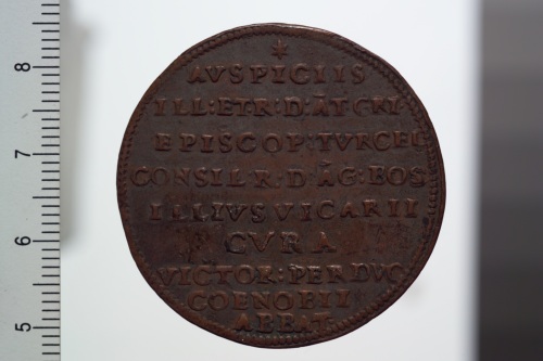 - ISCRIZIONI sul recto, in senso circolare lungo il perimetro della medaglia. - AEDES DD. MARCO. ATQ . ANDREAE . A . FUND : REST : AN . MDCXI - lettere capitali - a impressione - latino