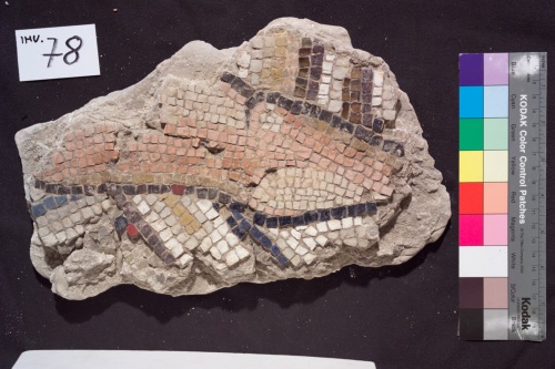 si tratta di un mosaico pavimentale policromo raffigurante, probabilmente, un braccio rappresentato con tessere rosa di varie gradazioni e contorno nero. Sono visibili, inoltre, delle bande parallele di colore bianco, giallo, nero e blu.