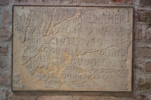 - NOTIZIE STORICO CRITICHE rinvenuta nel 1895 alla base di una struttura semicircolare della cattedrale torcellana, sotto il livello del piano dellambulacro. Danneggiata durante la rimozione. Ricomposta nel 1909 sotto la direzione di C.A. Levi, responsabile del Museo Provinciale, e dellarch. D. Rupolo, delegato regionale ai monumenti. A lungo conservata entro cornice di legno; restaurata e ricollocata nellabside della basilica nel 1954. Secondo R. Cessi (vedi bibliografia), non seguito da altri studiosi, si sarebbe trattato di materiale di spoglio proveniente in origine dalla Civitas Nova Heracliana.