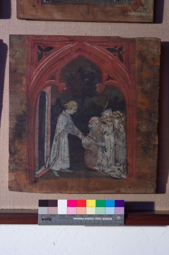- NOTIZIE STORICO CRITICHE Le tavolette appartenevano forse ad una decorazione di soffitto (per una possibile provenienza da un palazzo della famiglia Meli cfr. Nepi Sciré) ben più complessa. La critica ha infatti rilevato stringenti collegamenti tra questo ciclo ed altre analoghe opere conservate all'Albertini di Vienna (cfr. Ragghianti) al Museo di Trento e al Museo di Cremona (cfr. Rasmo). A partire da Longhi il ciclo è attribuito dalla critica, pur con diverse puntualizzazioni circa la completa autografia e la datazione, a Bonifacio Bembo (per una disamina delle diverse posizioni critiche cfr. Nepi Sciré, con bibliografia precedente).