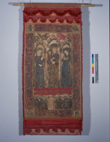 Gonfalone di S. Fosca. Madonna con bambino tra S. Fosca e S. Maura (?)