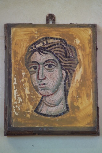 - NOTIZIE STORICO CRITICHE faceva parte della fascia superiore della controfacciata della basilica di Torcello, dove è raffigurata la scena dell'Anastasis e del Giudizio finale. Il defunto è raffigurato nella zona dell'Anastasis. Si tratta di una copia eseguita da Giovanni Moro in occasione dei restauri dei mosaici del 1848-53. Il mosaico fu realizzato per la sostituzione dell'originale, ma successivamente fu staccato per la ricollocazione, avvenuta nel 1896, dei frammenti musivi medioevali, una volta avvenuto il loro recupero. La datazione al secolo XIX è inoltre confermata dalla realizzazione piuttosto semplificata dei tratti del volto. I caratteri stilistici tipici del secolo XII sono qui banalizzati e resi in modo stilizzato e con una cromia più limitata rispetto all'originale. Le grosse tessere, soprattutto quelle di contorno, appesantiscono la figura rappresentata.