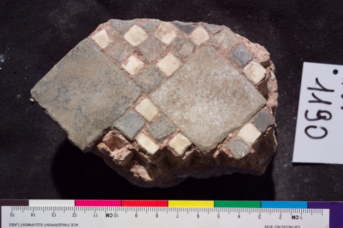 - NOTIZIE STORICO CRITICHE la diversa dimensione delle tessere determina una certa irregolarità nel motivo a scacchiera. Il pezzo è forse riconducibile a quelli con numero d'inventario 1191 e 1192.