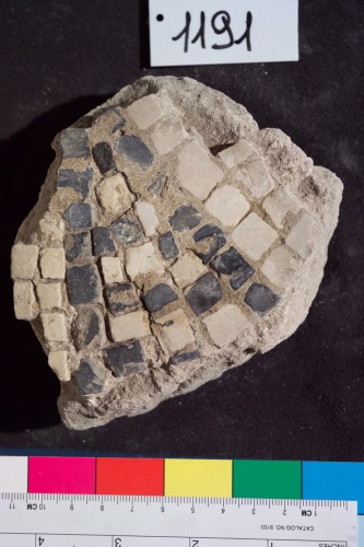 - NOTIZIE STORICO CRITICHE il motivo rappresentato nel mosaico risulta indecifrabile per la lacunosità del frammento che ci è giunto. Si può osservare l'utilizzo di tessere di dimensioni variabili e di forma irregolare. È forse riconducibile ai pezzi con n. d'inventario 1190 e 1192.