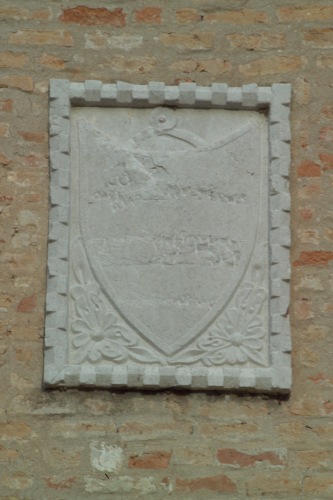 altorilievo in pietra d'Istria raffigurante lo stemma della famiglia veneziana Michiel entro cornice dentellata. Lo scudo di forma gotica è del genere "appeso" ed è affiancato in basso da due grandi fiori e foglie.