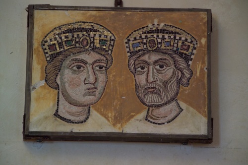 il lacerto musivo rappresenta le teste dei re Salomone e David, affrontate l'una all'altra. Entrambi sono cinti da una grande corona gemmata che ne sottolinea la dignità regale. Salomone presenta i bordi del viso, i con torni degli occhi e del naso adunco segnati da tessere scure mentre il resto del volto è riempito da tessere rosee, più scure in corrispondenza delle gote. Anche David presenta caratteri simili oltre ad una corta barba striata. I contorni di entrambe la figure sono segnati da tessere nere.