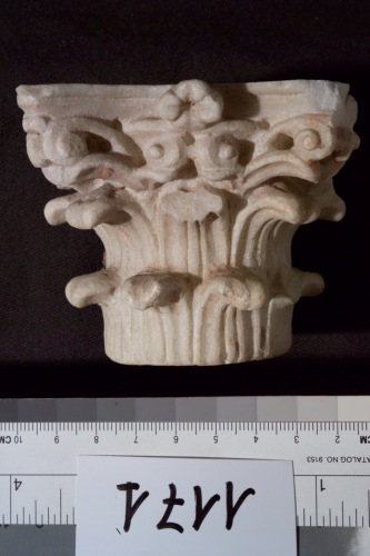 capitello corinzio, classicheggiante con fiore a quattro petali sull'abaco incurvato e foglie scanalate. Una faccia del capitello non Ë finita; sull'abaco e sull'attacco della colonna sono incise le linee di costruzione del capitello.
