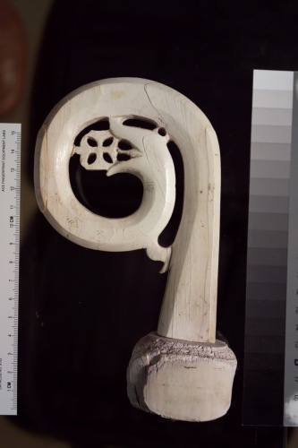 - NOTIZIE STORICO CRITICHE Il riccio di pastorale venne scoperto nel 1893 nella tomba del vescovo Bono Balbi, deposto nel 1215 (C.A. Levi, 1894-95). Nella tomba vennero rinvenuti anche i residui del legno che costituiva l'asta. Grazie alle fotografie di Levi - pubblicate sempre nel 1894-95 - conosciamo la decorazione dipinta, ora pressochè cancellata da una pulizia incontrollata, ma forse anche a causa dell'esposizione alla luce, poiché i motivi dipinti sono più scarsamente leggibili nelle foto del museo degli anni '70 (neg. 801-802). P.B. Cott (1930,1939) mise in relazione al riccio torcellano con la cosiddetta produzione siculo-araba e non vi è dubbio - grazie alle foto del Levi - della strettissima vicinanza a quelle officine. Si vedano in particolare i motivi a doppi archetti con pallini, gli uccelli (ora del tutto scomparsi)e i fioroni. La produzione descritta da Cott è inclusa tra XII e XII secolo ed Ë perfettamente compatibile con una datazione compresa tra il 1181 (anno in cui Bono Balbi è ancora parroco a Murano) e il 1215 (anno di morte del vescovo sicuramente in carica già nel 1212). Si veda Levi 1894-95.