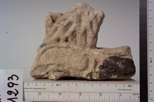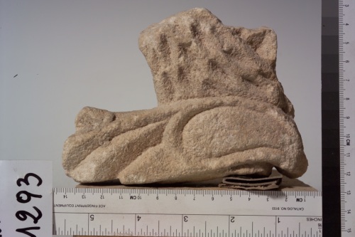 il frammento era pertinente ad una transenna. Esso è lavorato su entrambi i lati: da una parte il collo dell'animale fantastico è percorso da scalpellature fitte che vogliono rappresentare il pelo. Il corpo è attraversato da una lunga ala segnata da una solcatura a forma di goccia. Altri solchi rettilinei rappresentano il piumaggio. Sull'altro lato la decorazione è la stessa, ma realizzata in modo molto più grossolano.