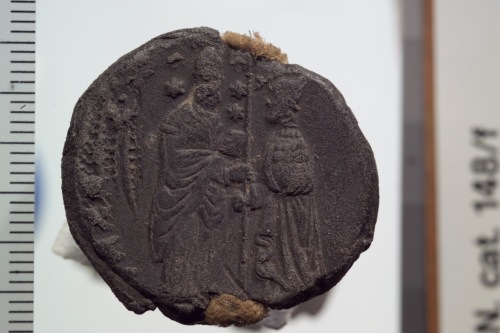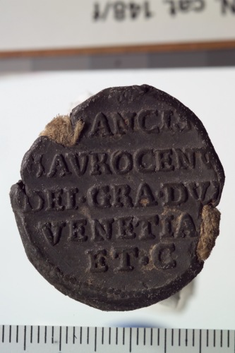 bolla di forma circolare del doge Francesco Morosini. Reca sul recto San Marco, a sinistra, regge con la destre un vessillo mentre il doge, a destre, reso di profilo e pi˘ piccolo a santo, regge l'asta del vessillo con la sinistra.