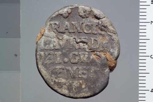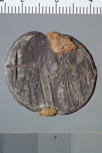 bolla plumbea del doge Francesco Loredan. Reca sul recto San Marco, a sinistra, regge con la destra un vessillo mentre il doge, a destra, reso di profilo e pi˘ piccolo del santo, regge l'asta del vessillo con la sinistra.
