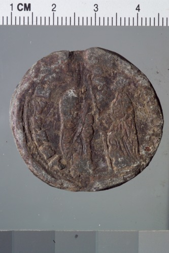 bolla plumbea del doge Antonio Priuli. Reca sul recto San Marco, a sinistra, regge con la destra un vessillo mentre il doge, a destra, reso di profilo e più piccolo del santo, regge l'asta del vessillo con la sinistra.