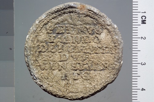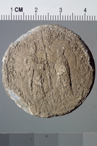 bolla plumbea. Reca sul recto San Marco, a sinistra, regge con la destra un vessillo mentre il doge, a destra, reso di profilo e più piccolo del santo, regge l'asta del vessillo con la sinistra.