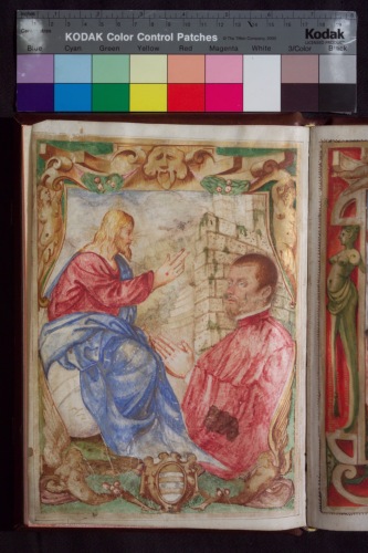 Commissione ducale del Doge Domenico Priuli al Podestà di Torcello Silvestro Orio del 1545 con ulteriori annotazioni fino al 1562. Consta di 87 pagine, delle qualil 10 bianche e due con miniature a piena pagina. Sulla prima il podest? inginocchiato adora il Cristo benedicente all'interno du un cartiglio coronato da moscheroni e chimere. Alle spalle del Podest? la torre di Torcello, in basso stemma. La seconda pagina rappresenta la Giustizia Coronata in trono tra le personificazioni della fede e dell'abbondanza accompagnata da leone marciano rampante che mostra il libro aperto; il tutto entro cornice con putti e cariatidi.
