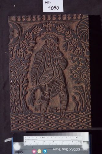 stampo in legno per stoffe con figura maschile.