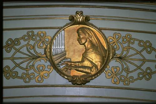 - ISCRIZIONE PREMIATA E PRIVILEGIATA FABBRICA D'ORGANI/ CREMA/ INZOLI CAV. PACIFICO/ Primo premio diploma d'onore/ ALL'ESPOSIZIONE INTERNAZIONALE DI MUSICA - BOLOGNA 1888/ Ristaurato Anno 1899/ N° 147