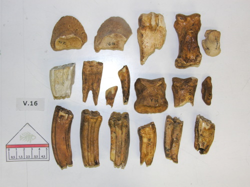 fossile (17 frammenti ossei di asino idruntino, serie)