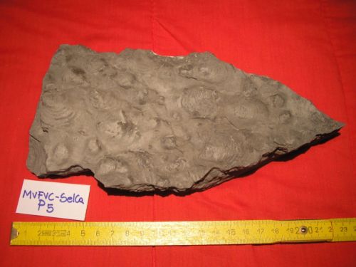 Animalia Mollusca Bivalvia: Lastra con impronte di bivalvi (circa 12) della caratteristica specie Claraia clarai | Italia , VENETO , ROCCA PIETORE ( BL ), Digonera