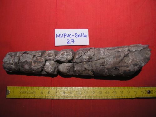 Animalia Mollusca Cephalopoda Michelinoceras: fragmocono di cefalopode ortoconico del genere Michelinoceras | Italia , VENETO , SELVA DI CADORE ( BL ), Corvo Alto