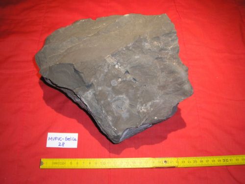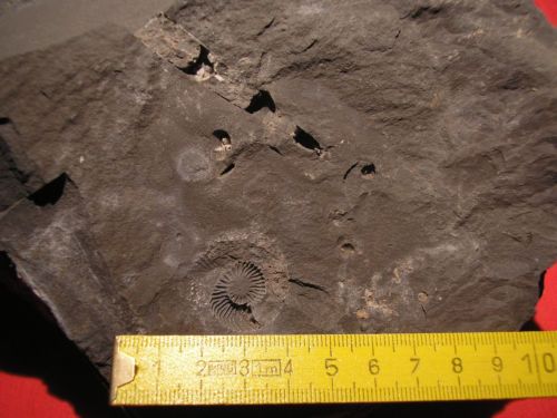 blocco di arenite vulcanogena con un'impronta esterna di ammonoide (Anolcites sp.) e un cefalopode ortoconicico (Michelinoceras sp.).